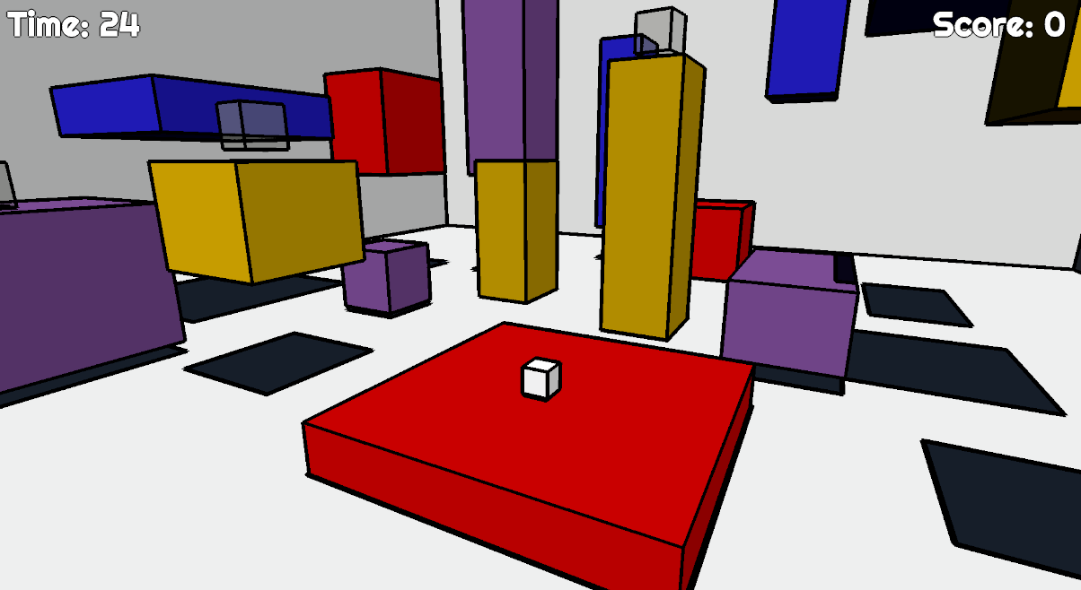 Collect the gray cubes before the time runs out and return to the starting platform to reset the timer. Every loop adds a void enemy replaying your previous round's actions, Be careful not to run in to them! Try to get the highest score you can.